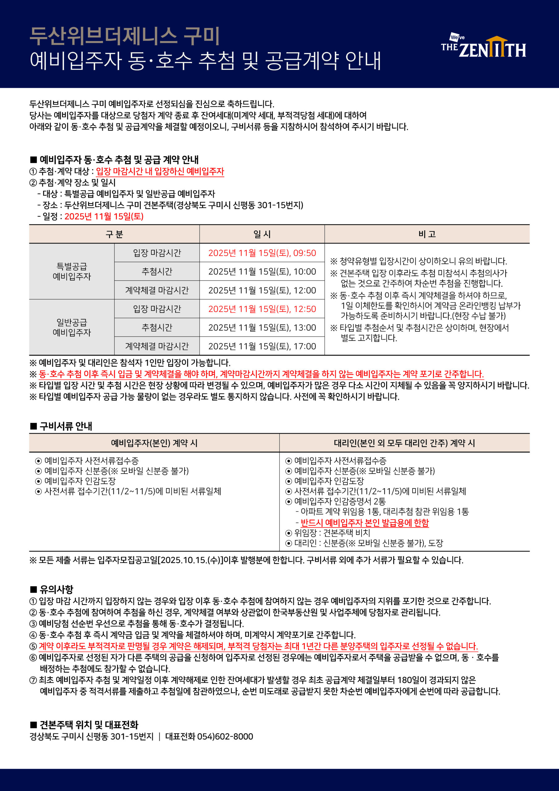 무순위 당첨자 계약안내문